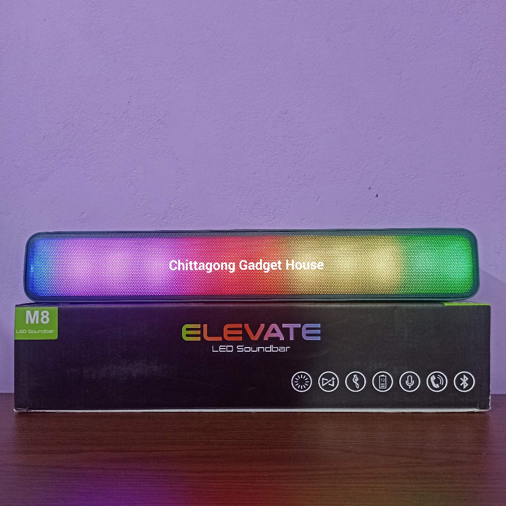 Elevate LED Soundbar M8 Smart Bluetooth Wireless Elevate Led Soundbar Desktop Speaker Supported 7 Types Stylish RGB Lighting Effects Smart Soundbar Speaker