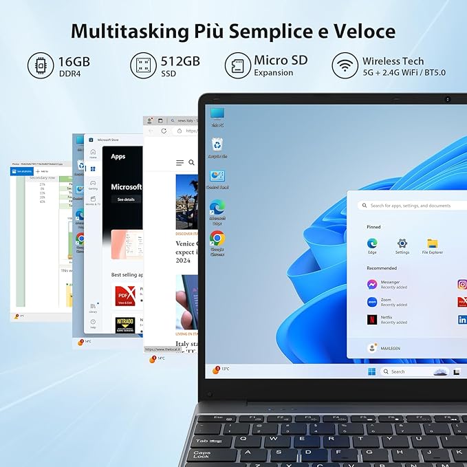 VOXTAR 16GB DDR4 512GB SSD, 15.6 inch Laptop with Quad-Core N95 Processor, 1920 x 1080 IPS FHD Screen, 2.4/5G WiFi, BT5.0, USB3.0 x 2