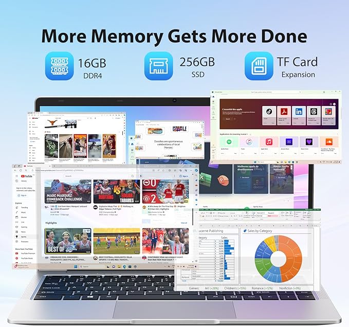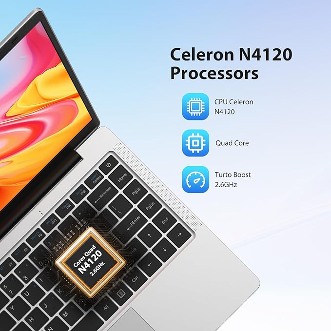 VOXTAR 14 Inch Laptops, Intel Celeron N4120 Quad Core, 16GB RAM 256GB SSD, 1920x1080 FHD IPS, Dual Speakers, 5G WiFi, USB 3.0, W 11pro Portable Laptop Computer for Business/Students